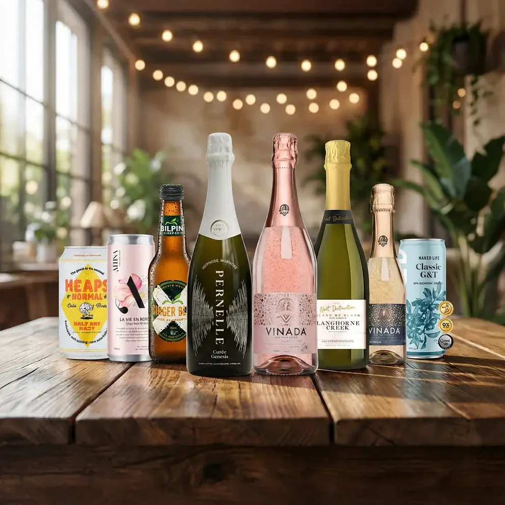 Inside, you will find refreshing bubbles like Pernelle Cuvée Genesis and a classic Blanc de Blanc, plus both Vinada piccolos for moments when you want something quick and celebratory. There is also a Naked Life Classic G&T and Altina La Vie En Rose, along with Bilpin Ginger Cider and a can of Heaps Normal.